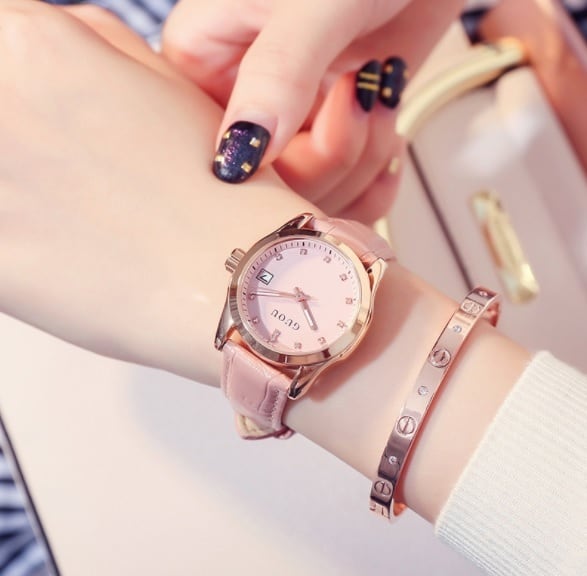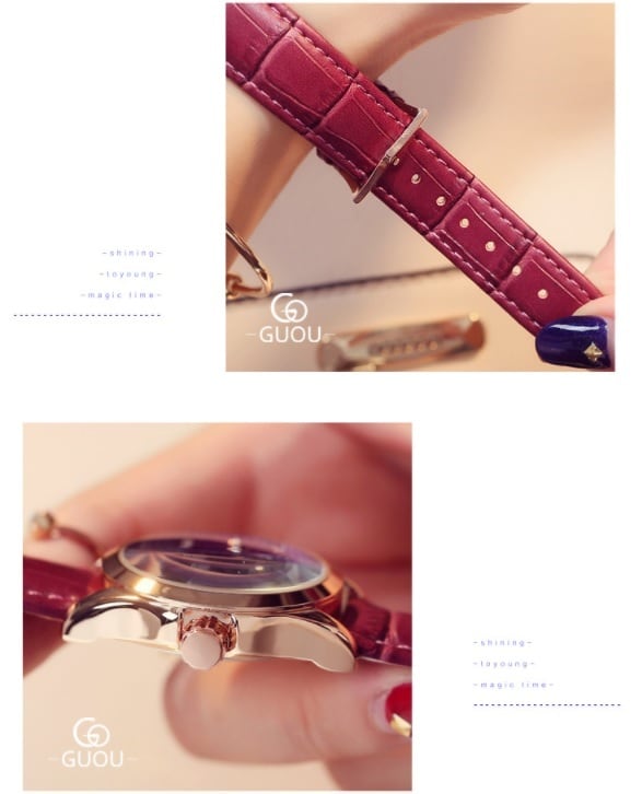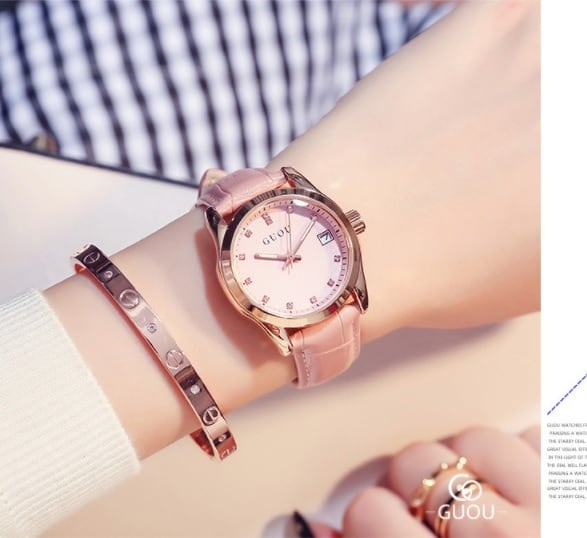 レディース腕時計 女性用 腕時計 時計 ブランド ウォッチ ラインストーン クォーツ アクセサリー ラッピング無料 送料無料 かわいい おしゃれ ゴールド ピンクゴールド 円形 丸い 革 ベルト ブレスレット イベント カジュアル 10代 20代 30代 40代 GUOU 8076