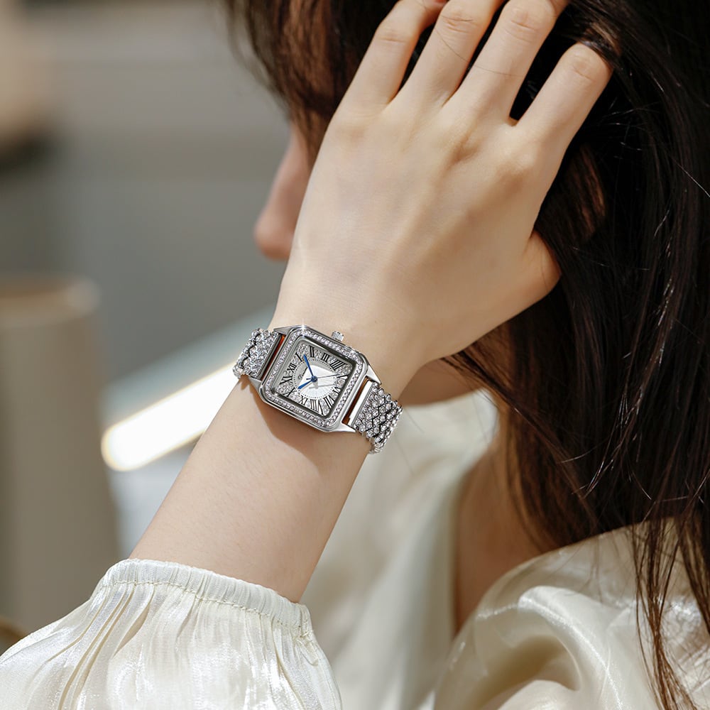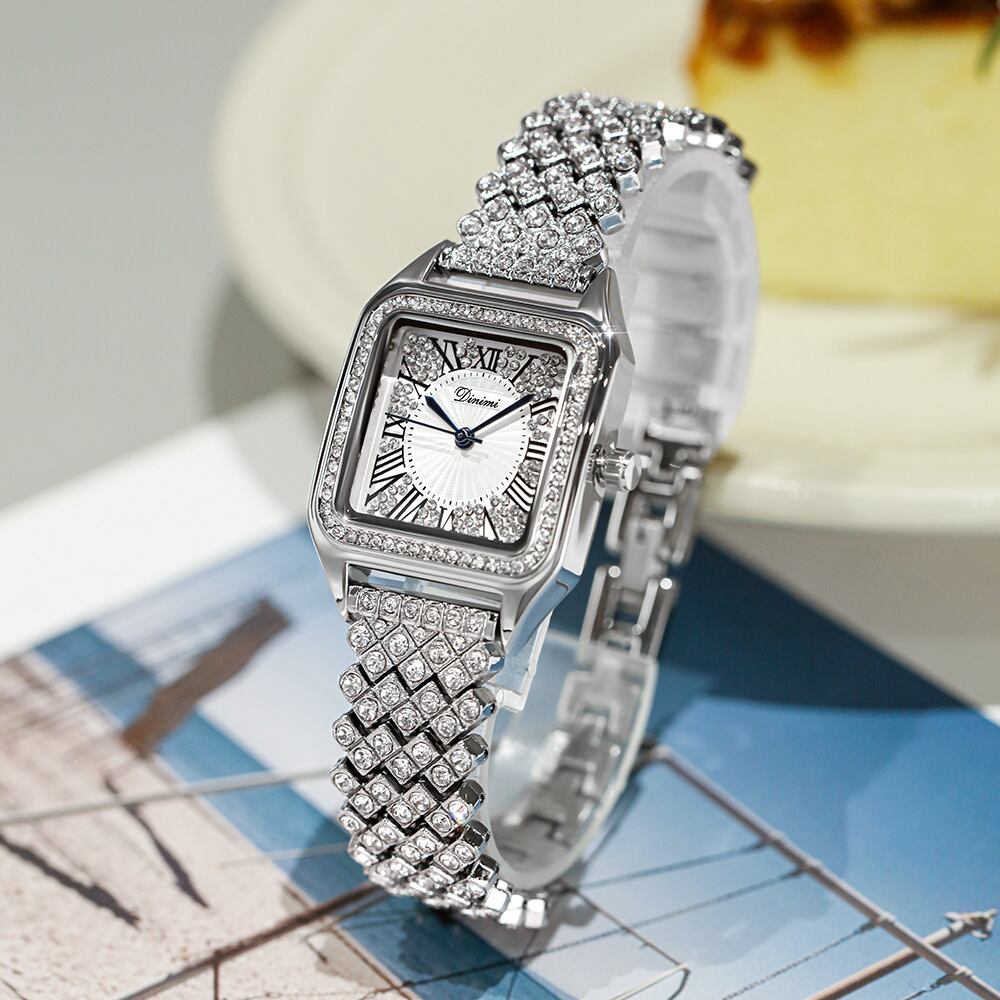 Dimini レディース 女性用 腕時計 ウォッチ ラインストーン石使用 ダイヤモンド クォーツ アクセサリー ラッピング無料 かわいい おしゃれ シルバー 77022