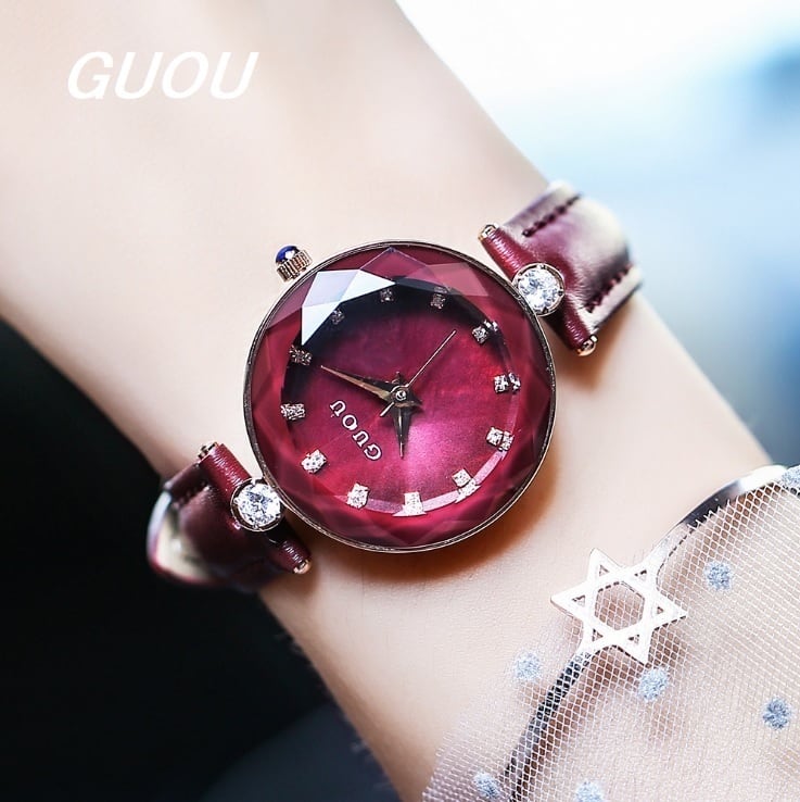 GUOU 腕時計 時計 レディース 女性用 ウォッチ セレブ 人気 クリスタル ガラスカット アクセサリー ラッピング無料 送料無料 かわいい おしゃれ ゴールド ブレスレット 旅行 イベント カジュアル 通勤 通学 丸い 円形 66611