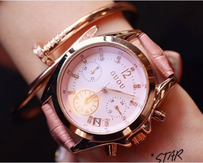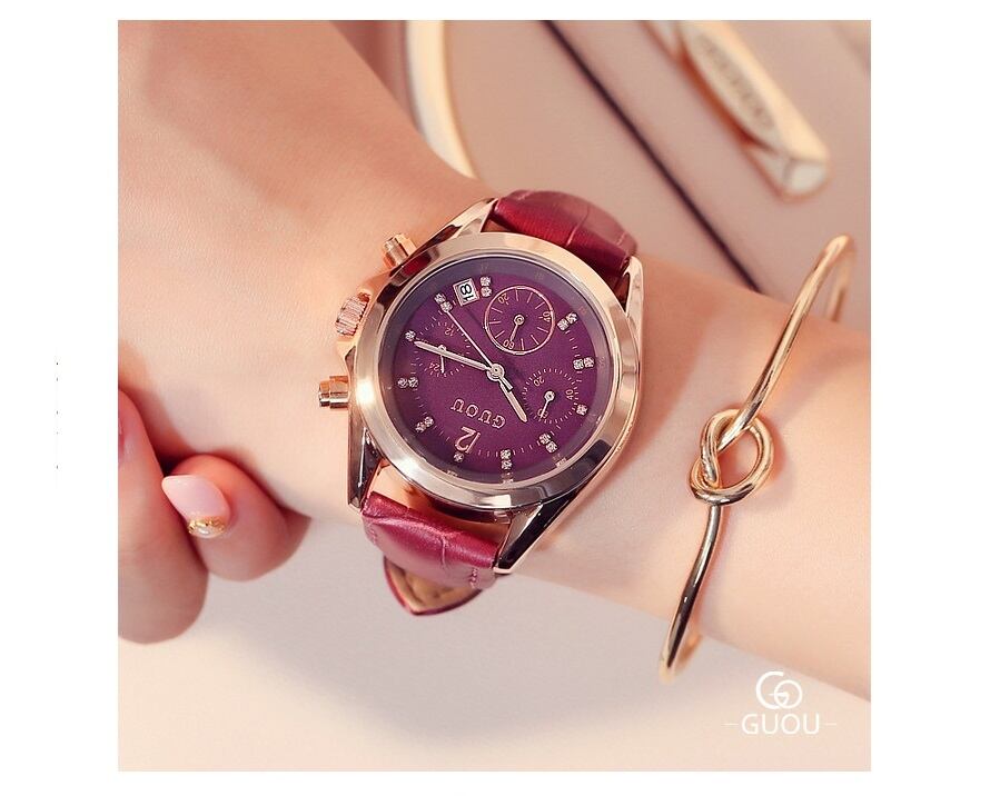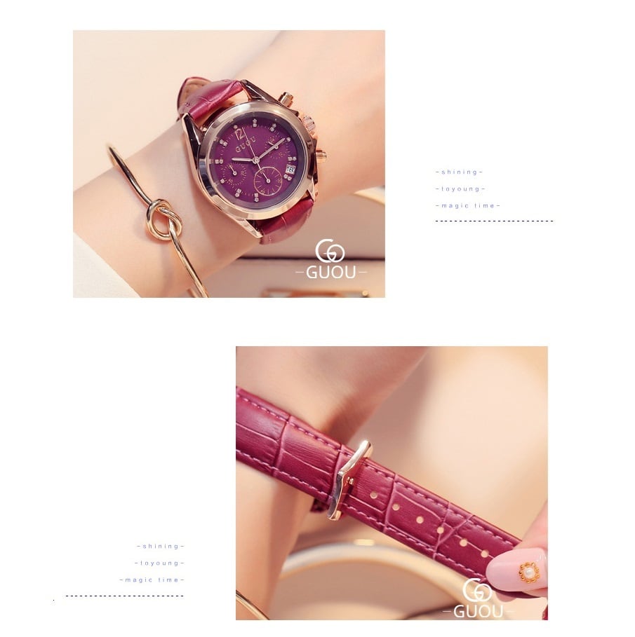 GUOU レディース 女性用 腕時計 時計 ウォッチ ラインストーン石使用クォーツ アクセサリー ラッピング無料 送料無料 かわいい おしゃれ ピンクゴールド ブレスレット 旅行 イベント カジュアル 通勤 通学 カレンダー 8132