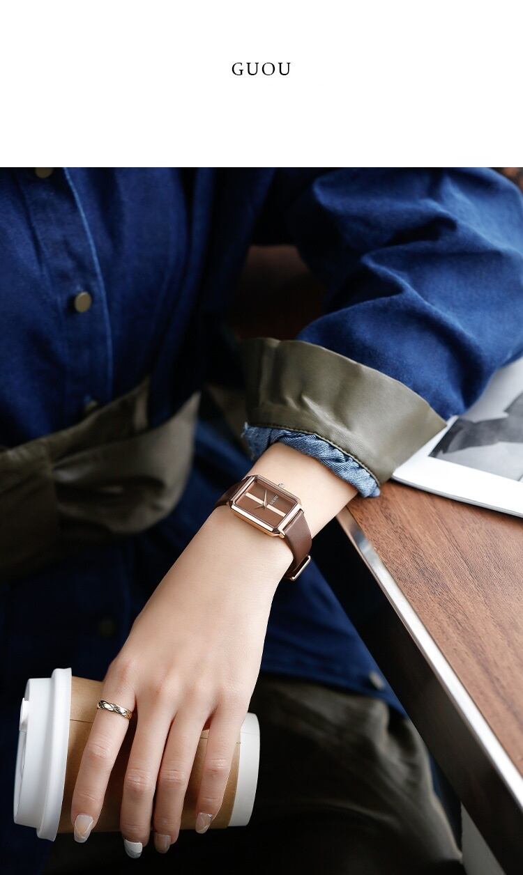 GUOU レディース腕時計 女性用 腕時計 時計 ウォッチ クォーツ アクセサリー ラッピング無料 送料無料 かわいい おしゃれ ゴールド ブレスレット 旅行 イベント カジュアル 通勤 通学 長方形 8227