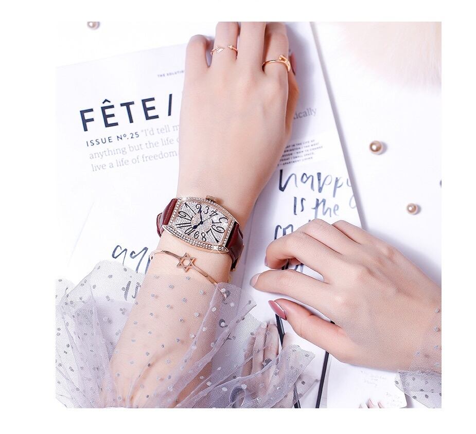 GUOU 腕時計 時計 レディース 女性用 ウォッチ セレブ 人気 クリスタル 楕円形 キラキラ ラインストーン アクセサリー ラッピング無料 送料無料 かわいい おしゃれ ゴールド ブレスレット 旅行 イベント カジュアル 通勤 通学 トノーフェイス(樽型)WG8200