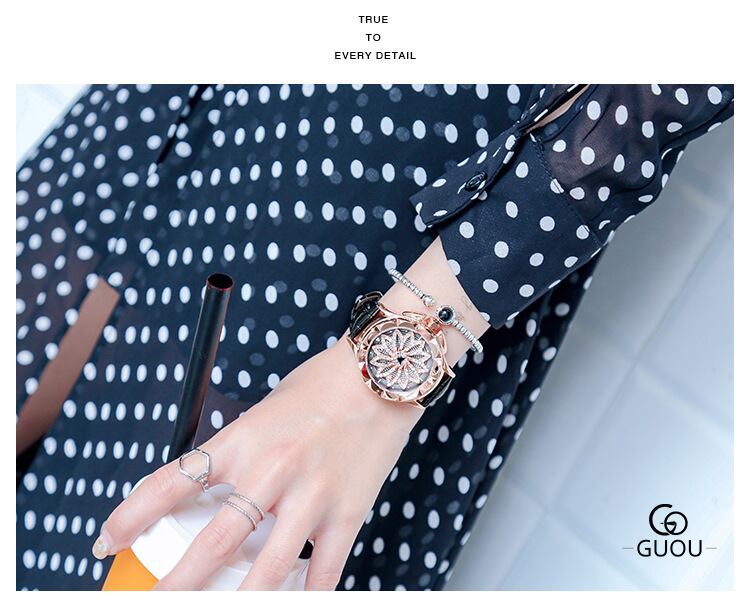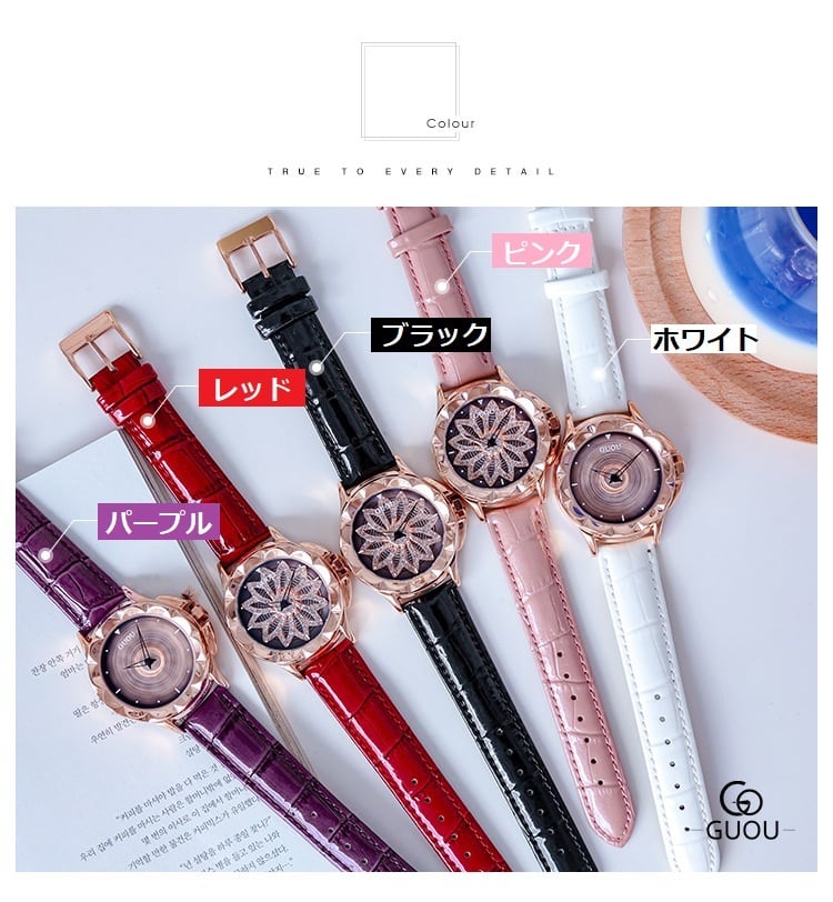 GUOU レディース 女性用 腕時計 時計 花びら クルクル回転 ウォッチ ラインストーン石使用クォーツ アクセサリー ラッピング無料 送料無料 かわいい おしゃれ ピンクゴールド ブレスレット 旅行 イベント カジュアル 通勤 通学 ダイヤモンド 6605-2