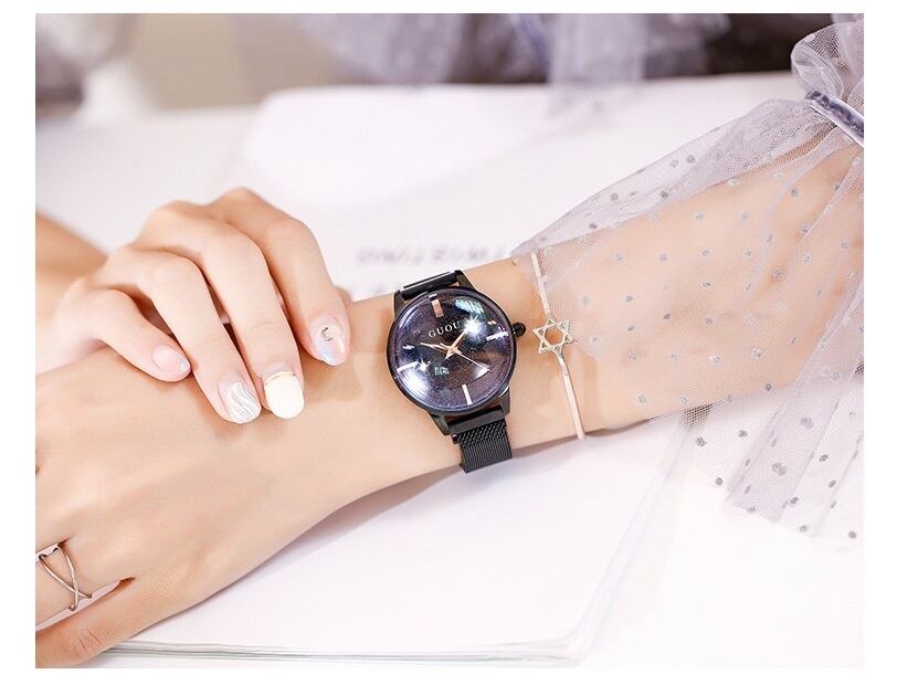 GUOU 腕時計 時計 レディース 女性用 ウォッチ セレブ 人気 クリスタル ガラスカット アクセサリー ラッピング無料 送料無料 かわいい おしゃれ ゴールド ブレスレット 旅行 イベント カジュアル 通勤 通学 丸い 円形 66614