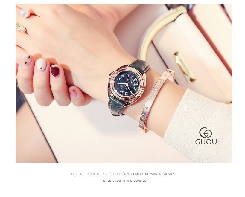 GUOU 腕時計 時計 レディース 女性用 ウォッチ セレブ 人気 クリスタル ガラスカット アクセサリー ラッピング無料 送料無料 かわいい おしゃれ ゴールド ブレスレット 旅行 イベント カジュアル 通勤 通学 丸い 円形 8211