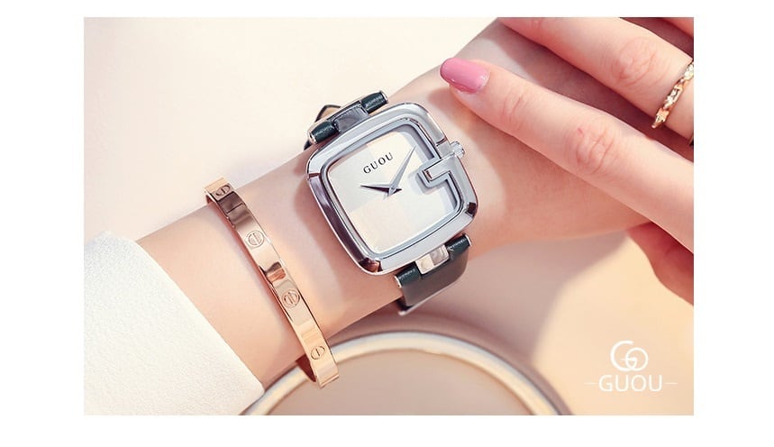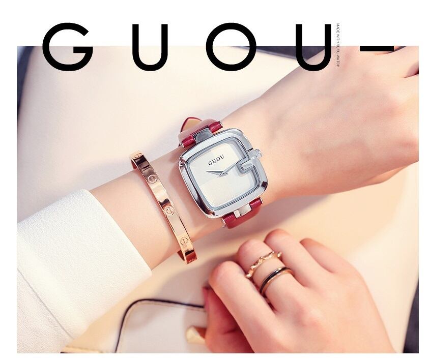 GUOU 腕時計 時計 レディース 女性用 ウォッチ セレブ 人気 クリスタル アクセサリー ラッピング無料 かわいい おしゃれ ゴールド ブレスレット 旅行 イベント カジュアル 通勤 通学 正方形 8190b