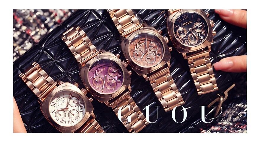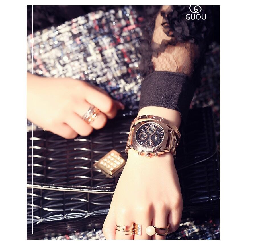 GUOU レディース 女性用 腕時計 時計 ウォッチ ラインストーン石使用クォーツ アクセサリー ラッピング無料 送料無料 かわいい おしゃれ ピンクゴールド ブレスレット 旅行 イベント カジュアル 通勤 通学 カレンダー8131
