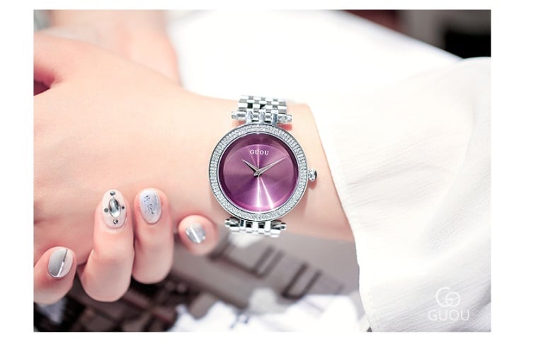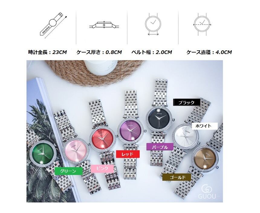 GUOU レディース 女性用 腕時計 時計 ウォッチ ラインストーン石使用クォーツ アクセサリー ラッピング無料 送料無料 かわいい おしゃれ ゴールド シルバーダイヤモンド ブレスレット 旅行 イベント 円方 マルイ カジュアル 通勤 通学 8196