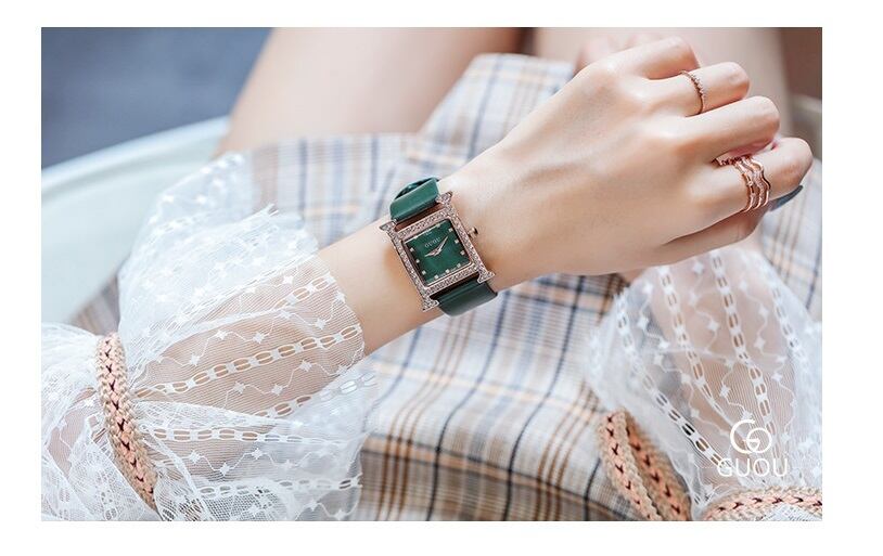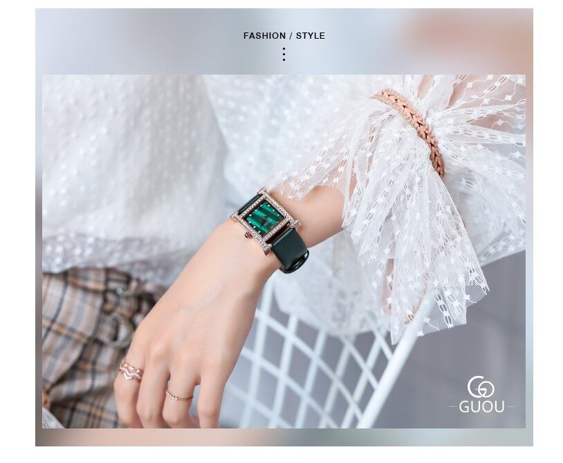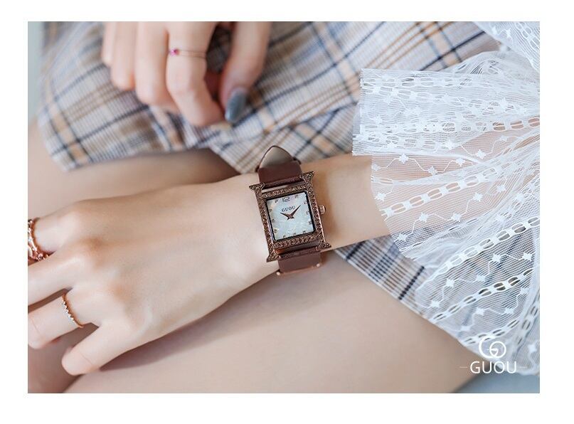 GUOU 腕時計 時計 レディース 女性用 ウォッチ セレブ 人気 クリスタル アクセサリー ラッピング無料 かわいい おしゃれ ゴールド ブレスレット 旅行 イベント カジュアル 通勤 通学 正方形 ダイヤモンド821402