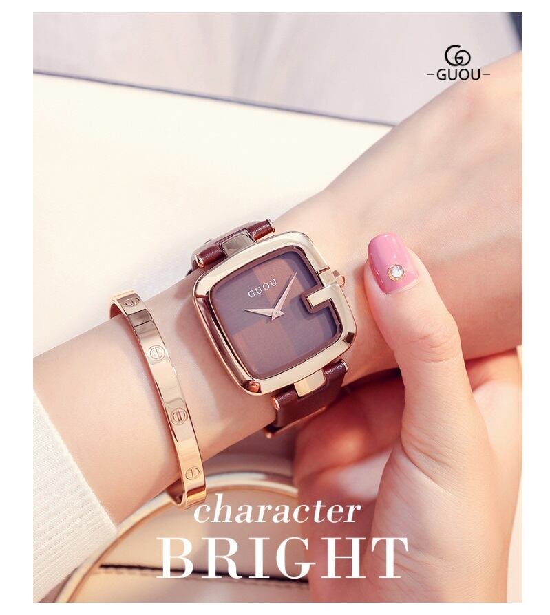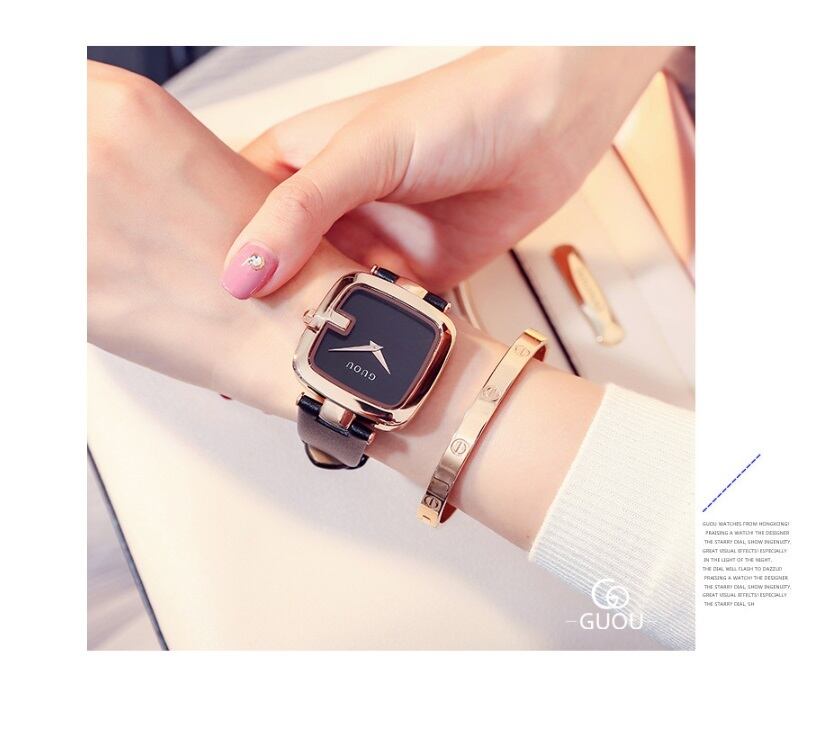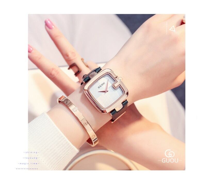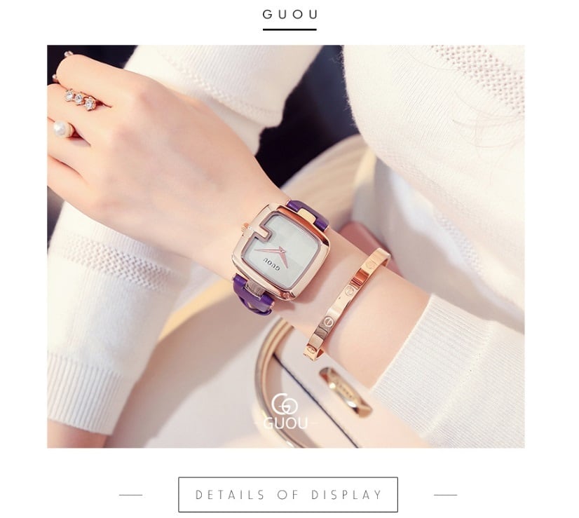 GUOU 腕時計 時計 レディース 女性用 ウォッチ セレブ 人気 クリスタル アクセサリー ラッピング無料 かわいい おしゃれ ゴールド ブレスレット 旅行 イベント カジュアル 通勤 通学 正方形 8190