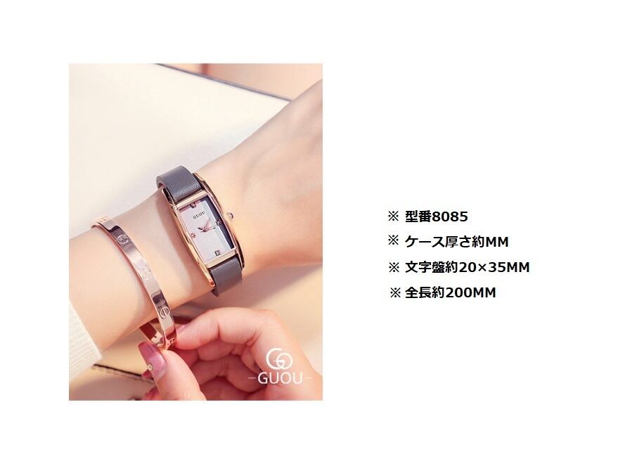 GUOU 腕時計 時計 レディース 女性用 ウォッチ セレブ 人気 クリスタル アクセサリー ラッピング無料 かわいい おしゃれ ゴールド ブレスレット 旅行 イベント カジュアル 通勤 通学 長方形 ダイヤモンド8085