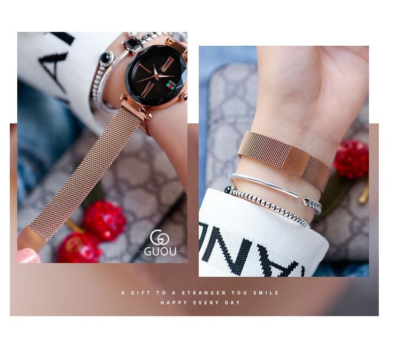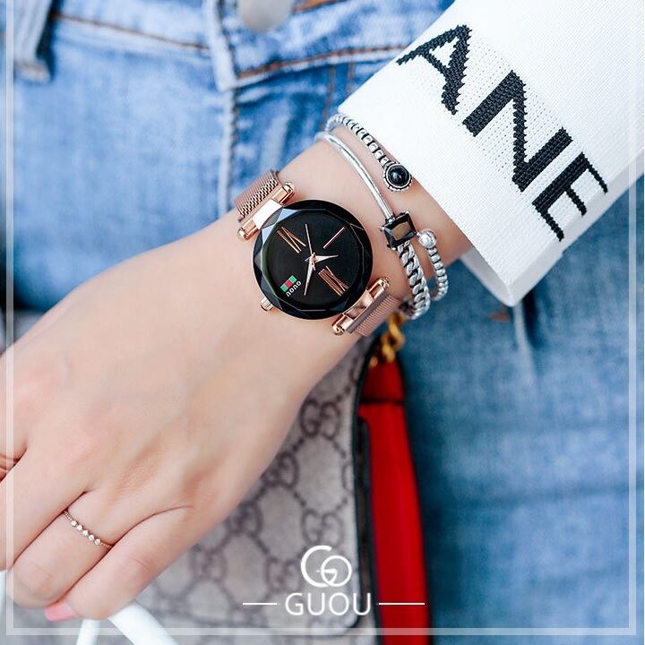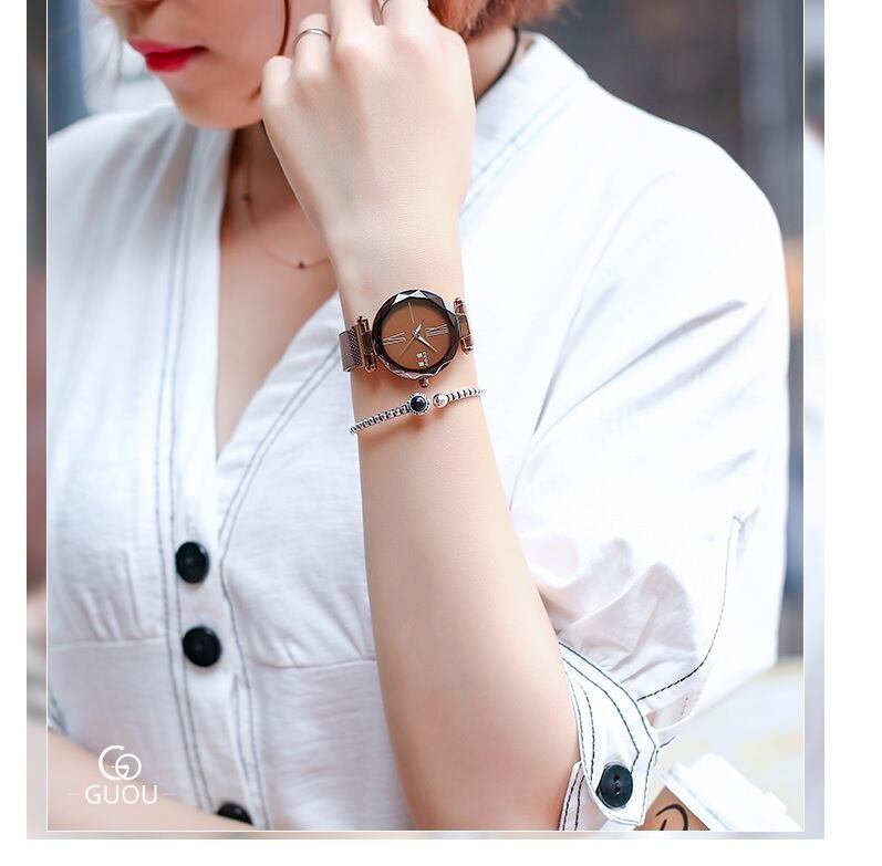 GUOU 腕時計 時計 レディース 女性用 ウォッチ 人気 アクセサリー ラッピング無料 送料無料 かわいい おしゃれ 円形 ゴールド ブレスレット 旅行 イベント カジュアル 通勤 通学 ガラスカットWG8197