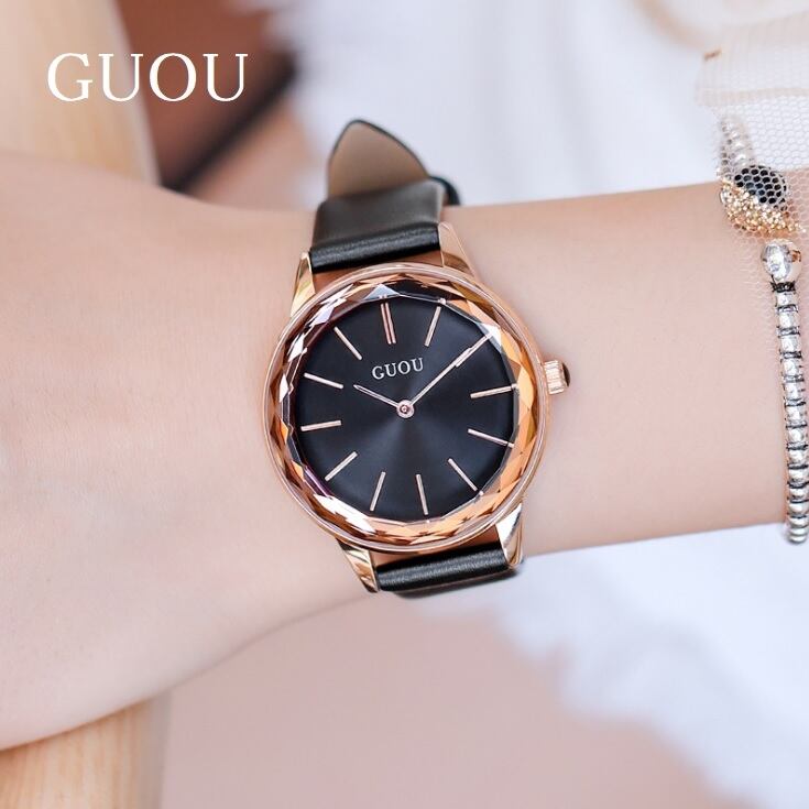 GUOU 腕時計 時計 レディース 女性用 ウォッチ 人気 アクセサリー ラッピング無料 送料無料 かわいい おしゃれ クリスタル ガラスカット ゴールド ブレスレット 旅行 イベント カジュアル WG6608