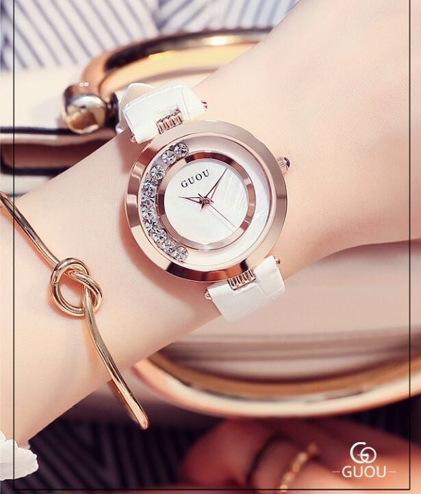 GUOU レディース 女性用 腕時計 時計 エレガント ウォッチ ラインストーン石使用クォーツ アクセサリー ラッピング無料 かわいい おしゃれ ゴールド ブレスレット 旅行 イベント カジュアル 通勤 通学 WG8039