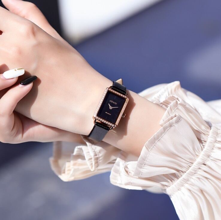 GUOU 腕時計 時計 レディース 女性用 ウォッチ セレブ 人気 クリスタル アクセサリー ラッピング無料 かわいい おしゃれ ゴールド ブレスレット 旅行 イベント 長方形66635
