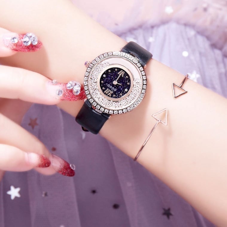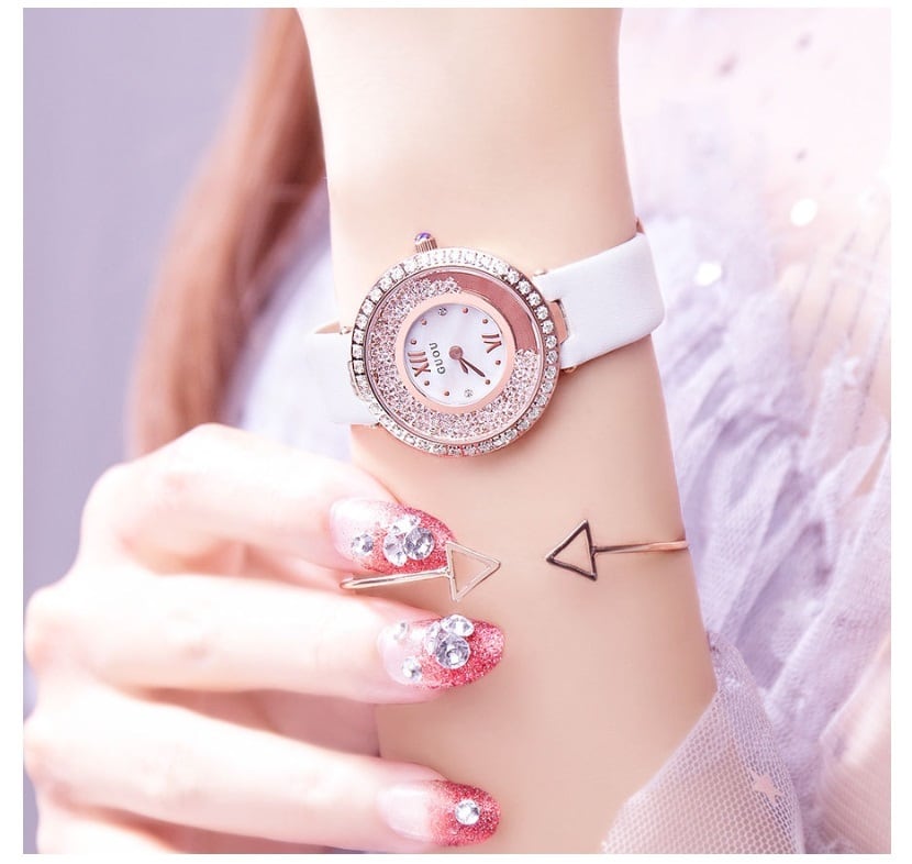 GUOU 腕時計 時計 レディース 女性用 ウォッチ セレブ 人気 アクセサリー ラッピング無料 送料無料 かわいい おしゃれ シルバー ラインストーン ブレスレット 旅行 イベント カジュアル 通勤 通学 丸い 円形 8217