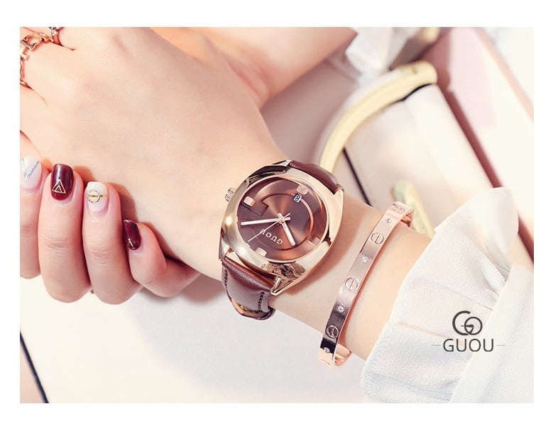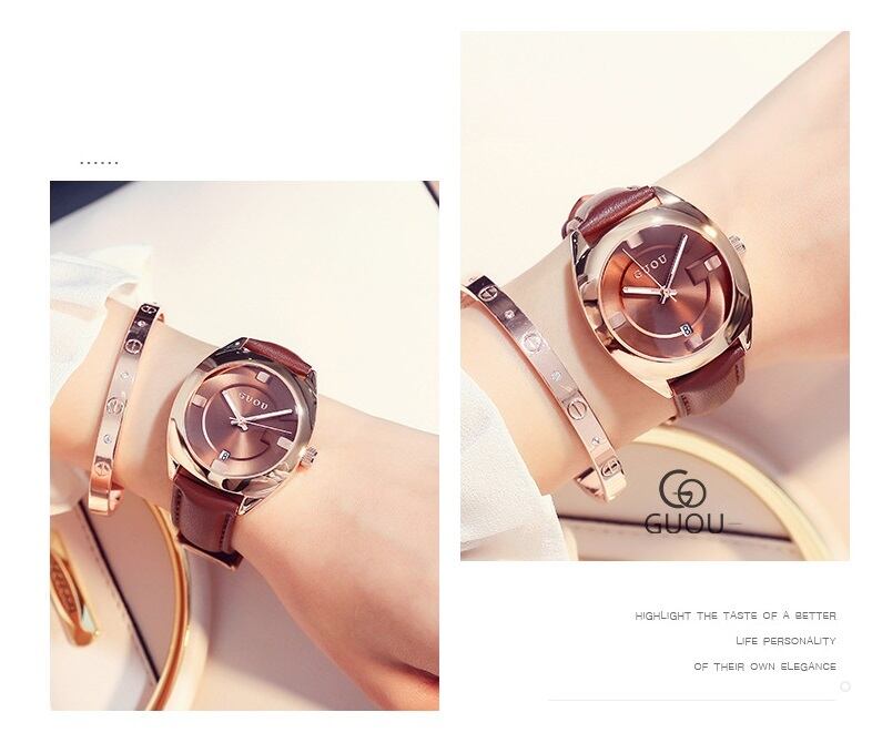 GUOU 腕時計 時計 レディース 女性用 ウォッチ セレブ 人気 アクセサリー ラッピング無料 かわいい おしゃれ ピンクゴールド ブレスレット 旅行 イベント カジュアル 通勤 通学 丸形 日本製ムーブメント カレンダー 8097