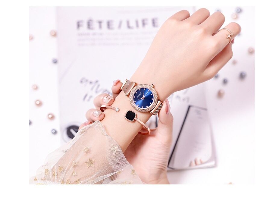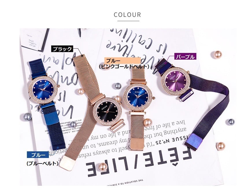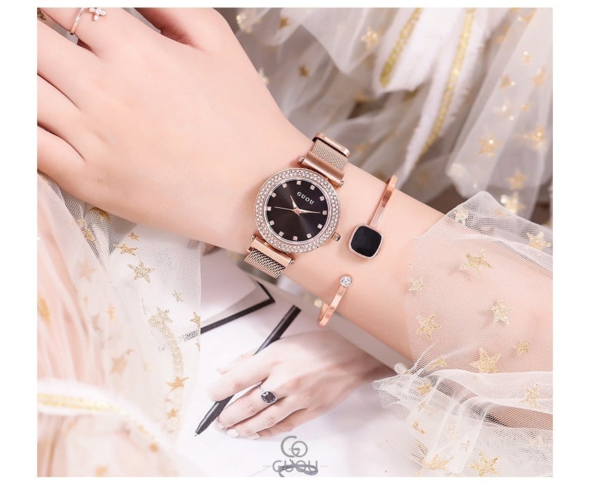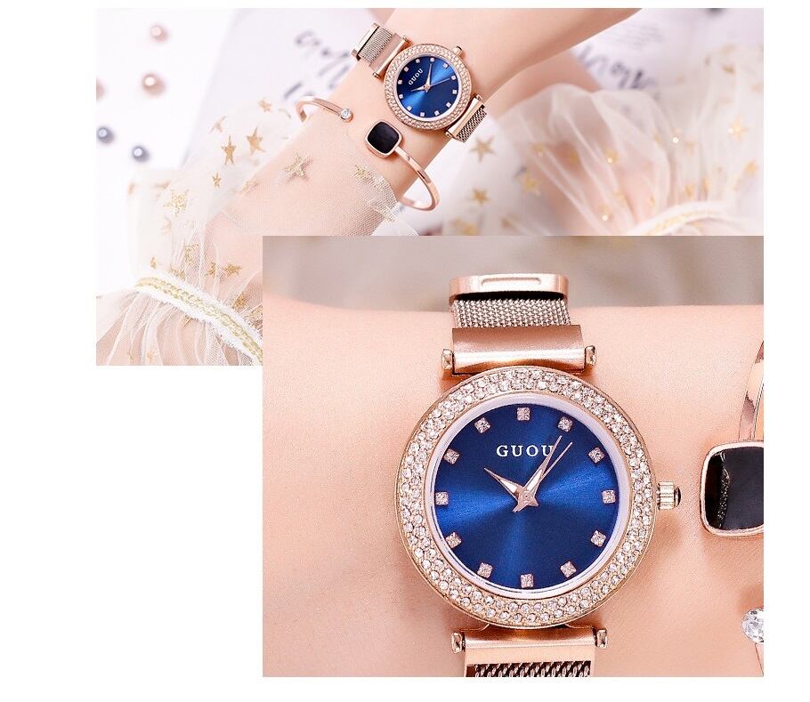 GUOU レディース 女性用 腕時計 時計 ウォッチ ラインストーン石使用クォーツ アクセサリー ラッピング無料 送料無料 かわいい おしゃれ ピンクゴールド ブレスレット 旅行 イベント ダイヤモンド 通勤 通学 丸形 8112