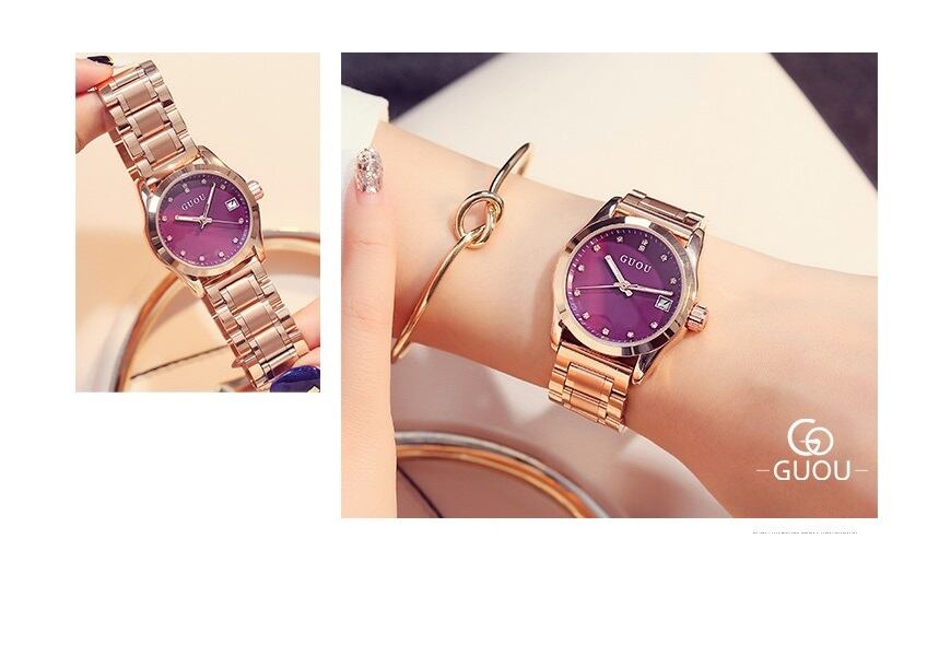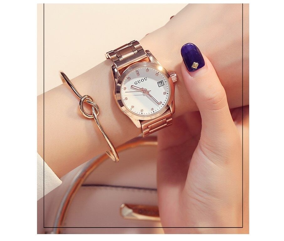 GUOU レディース 女性用 腕時計 時計 エレガント ウォッチ ラインストーン石使用クォーツ アクセサリー ラッピング無料 かわいい おしゃれ ゴールド ブレスレット 旅行 イベント カジュアル 通勤 通学 WG8076b