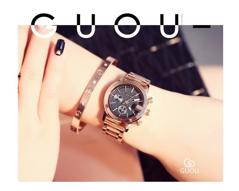 GUOU 腕時計 時計 レディース 女性用 ウォッチ セレブ 人気 クリスタル アクセサリー ラッピング無料 かわいい おしゃれ ゴールド ブレスレット 旅行 イベント カジュアル 通勤 通学 円形 G型 8173