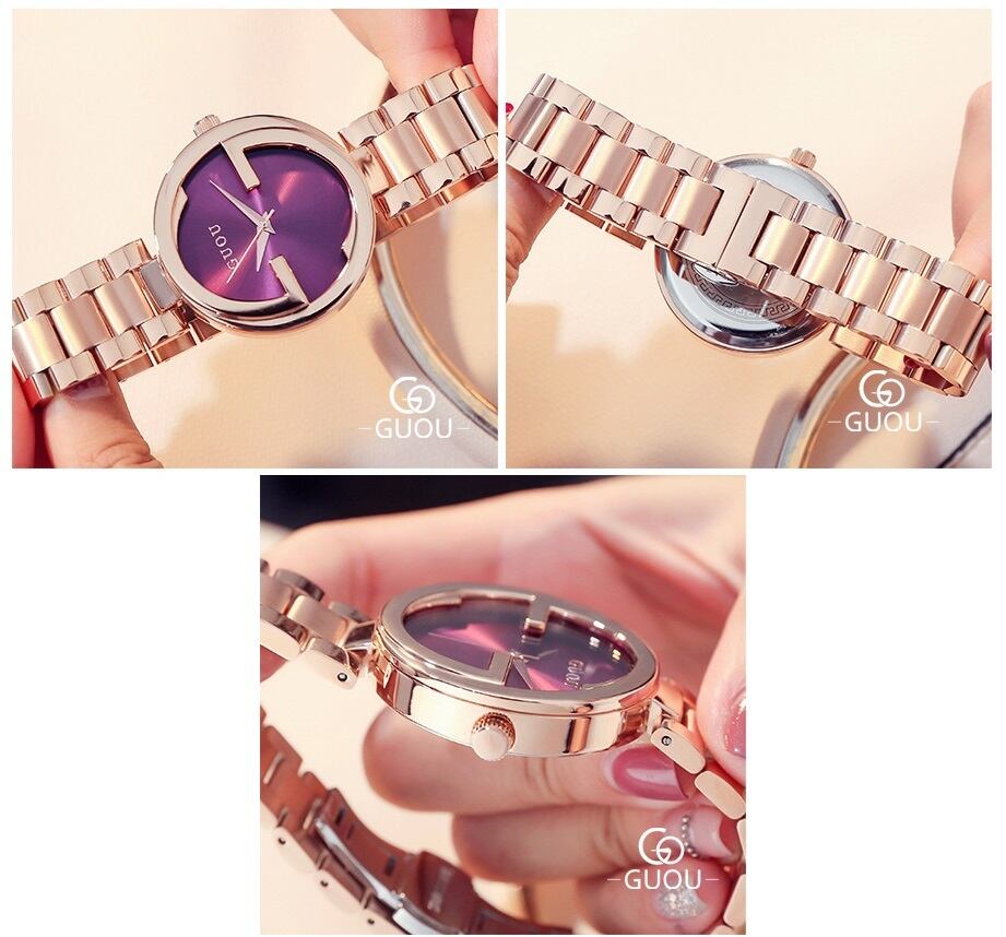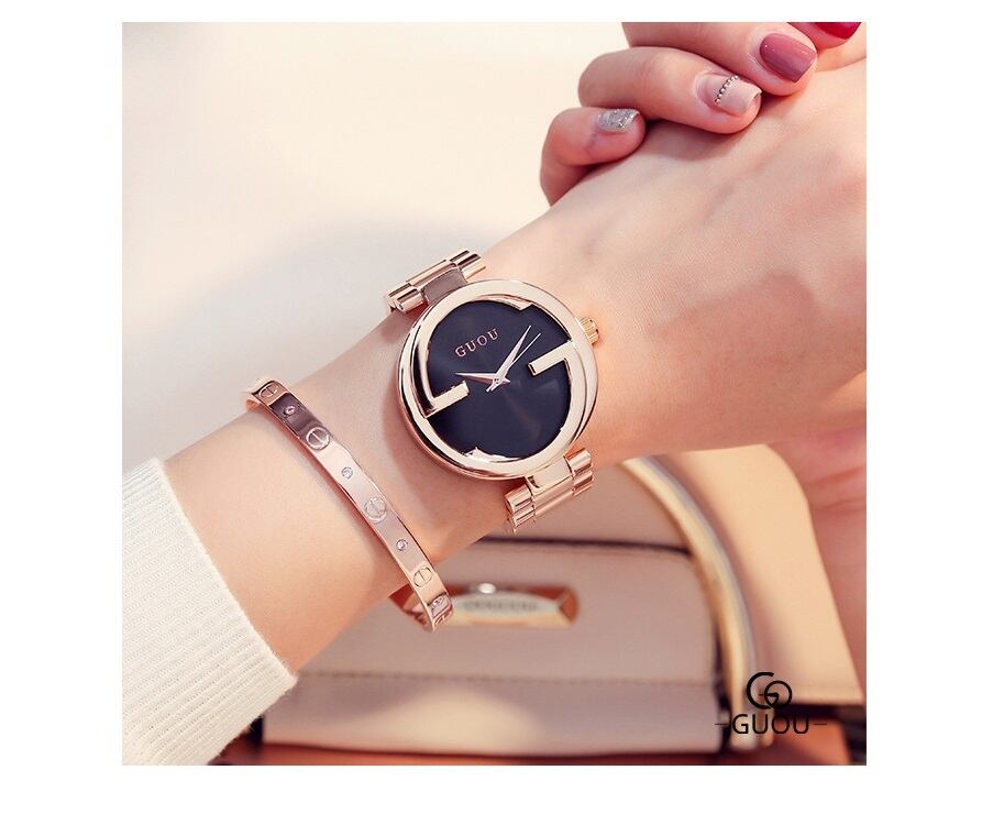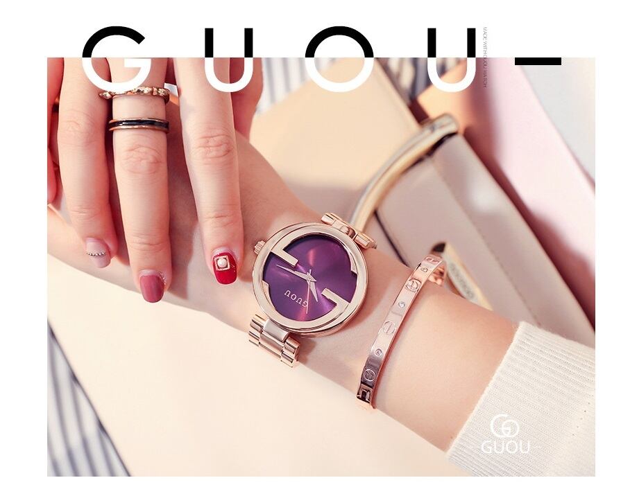 GUOU 腕時計 時計 レディース 女性用 ウォッチ セレブ 人気 クリスタル アクセサリー ラッピング無料 送料無料 かわいい おしゃれ ゴールド ブレスレット 旅行 イベント カジュアル 通勤 通学 Gデザイン8174