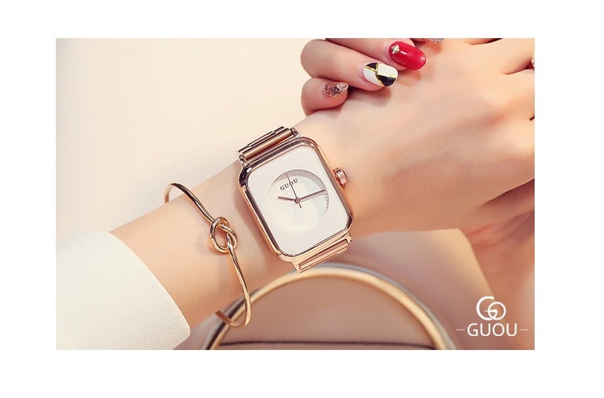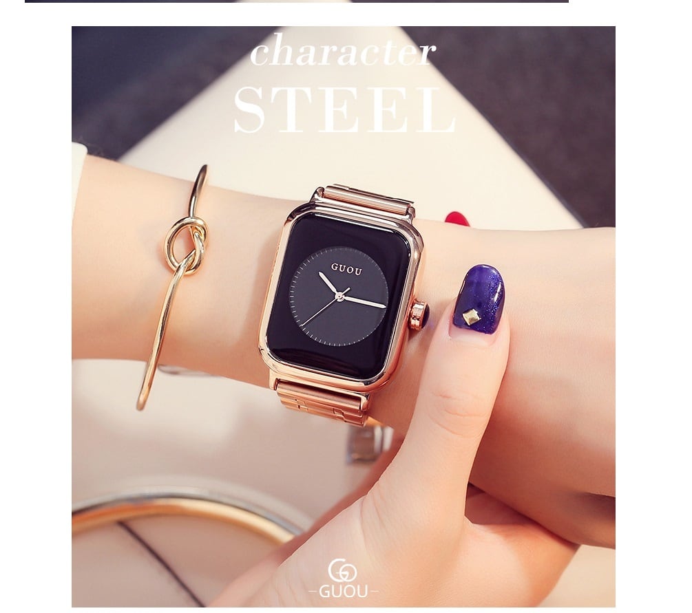 GUOU 腕時計 時計 レディース 女性用 ウォッチ セレブ 人気 クリスタル アクセサリー ラッピング無料 送料無料 かわいい おしゃれ ゴールド ブレスレット 旅行 イベント カジュアル 通勤 通学 白黒 長方形 8162
