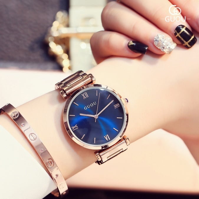 GUOU 腕時計 時計 レディース 女性用 ウォッチ セレブ 人気 クリスタル アクセサリー ラッピング無料 送料無料 かわいい おしゃれ ゴールド ブレスレット 旅行 イベント カジュアル 通勤 通学 シンプル 8149