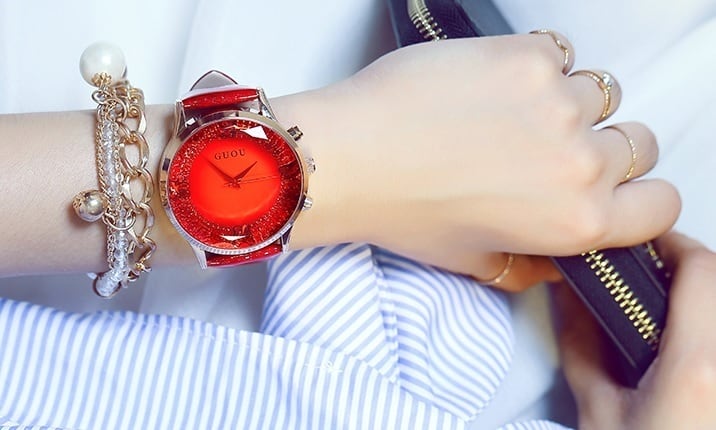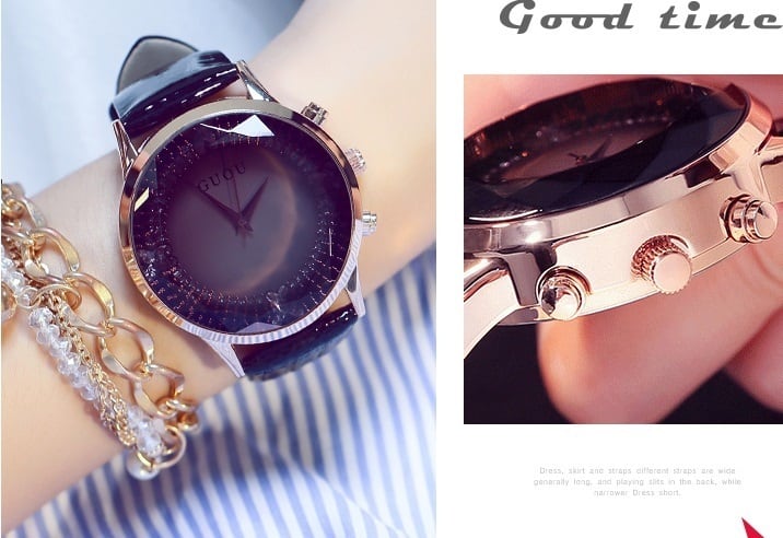腕時計 時計 レディース腕時計 女性用 ウォッチ クリスタル ガラスカット アクセサリー ラッピング無料 送料無料 かわいい おしゃれ ゴールド ブレスレット 旅行 イベント カジュアル 通勤 通学 丸い 円形 10代 20代 30代 40代 GUOU WG18107