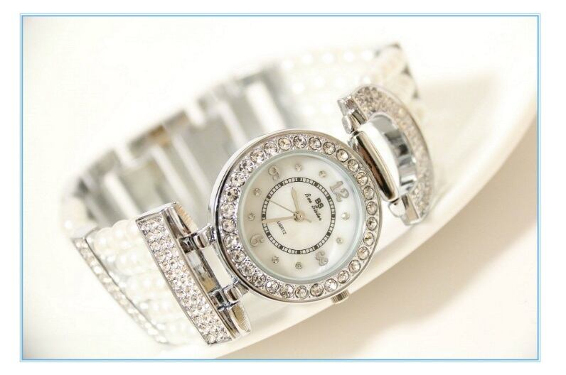 BS bee sister 腕時計 時計 レディース 女性用 ウォッチ セレブ ダイヤモンド 人気 クリスタル ガラスカット アクセサリー ラッピング無料 かわいい おしゃれ シルバー ブレスレット 旅行 イベント カジュアル パールベルト 真珠 0746M