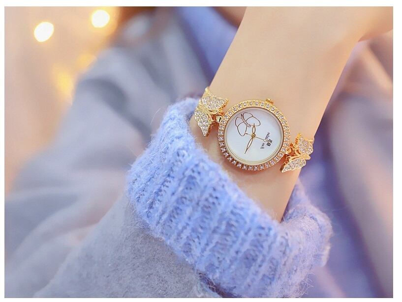 BS bee sister 腕時計 時計 レディース 女性用 ウォッチ セレブ ゴージャス ダイヤモンド 人気 クリスタル ガラスカット アクセサリー ラッピング無料 かわいい おしゃれ シルバー ピンクゴールド ブレスレット 旅行 イベント カジュアル 丸い 円形 蝶々 FA1267