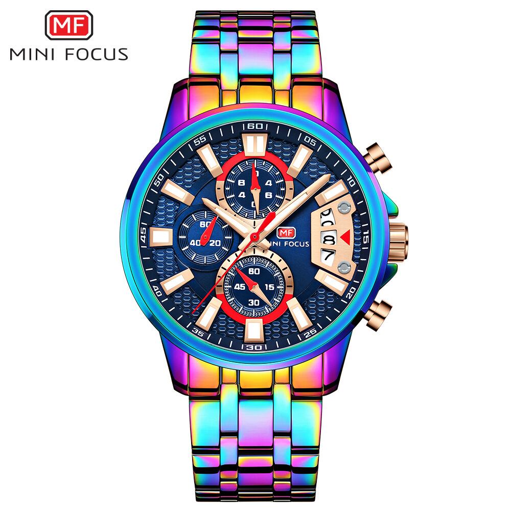 MINIFOCUS メンズ 男性用 腕時計 時計 ファッション スポーツ ミリタリーマルチ クォーツ ストップウォッチ クロノグラフ カレンダー 夜光 オシャレ MEN'S WATCH グラデーションタイプ MF0352G