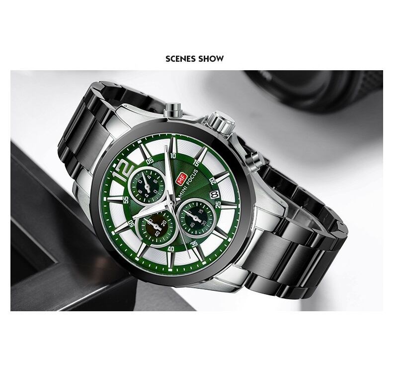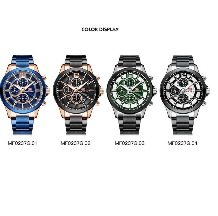 MINI FOCUS メンズ 男性用 腕時計 時計 ストップウォッチ クロノグラフ 夜光 スポーツ 欧米 海外人気 ミリタリーマルチ クォーツ カレンダー MF0237G