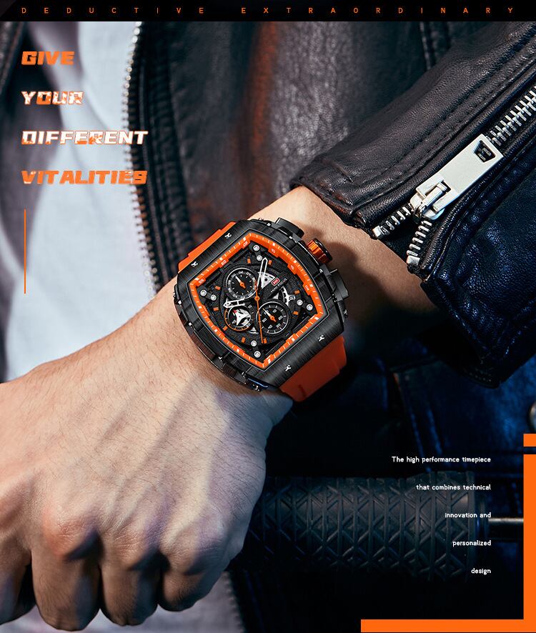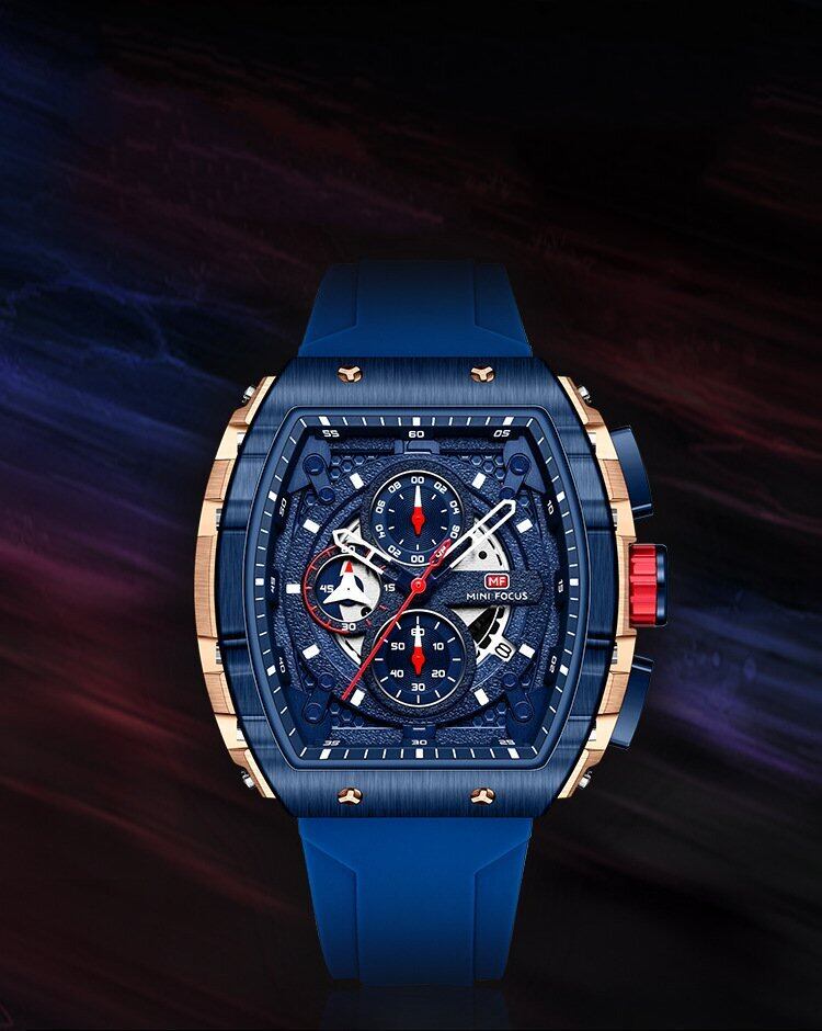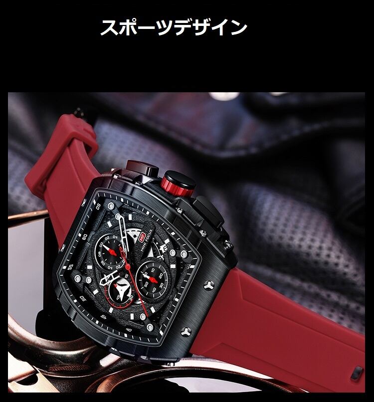 MINI FOCUS 腕時計 メンズ 防水 スポーツ トノー型 樽型 ミリタリー 多機能 ラバーベルト クラシック クロノグラフ 日付 大きめ ビックフェイス 3気圧日常生活防水 ステンレススチール 夜光インデックス アナログ おしゃれ MF0399G