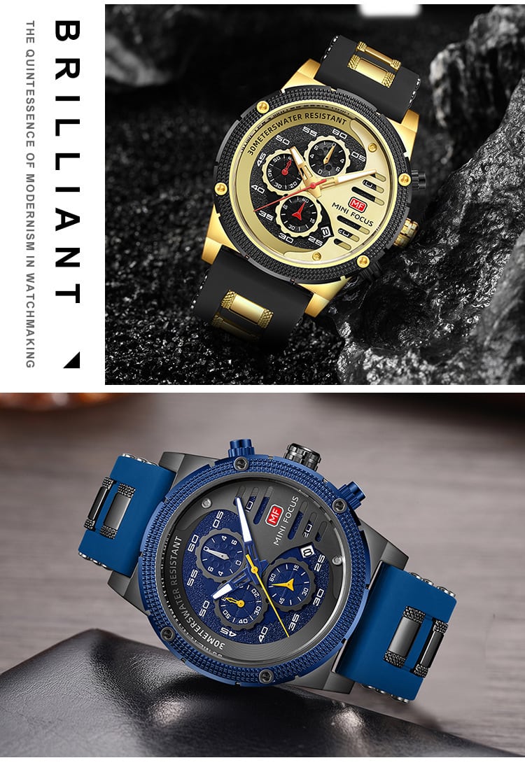 MINI FOCUS メンズ 男性用 腕時計 時計 ストップウォッチ クロノグラフ 夜光 スポーツ 欧米 海外人気 ミリタリーマルチ クォーツ カレンダー MF0246G