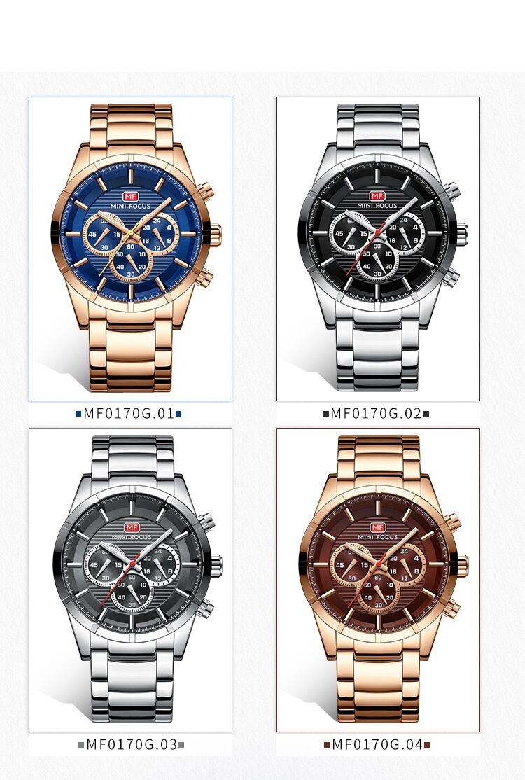 MINI FOCUS 腕時計 メンズ 防水 スポーツ ミリタリー 多機能 ラバーベルト クラシック クロノグラフ 日付 大きめ ビックフェイス 3気圧日常生活防水 ステンレススチール 夜光インデックス アナログ おしゃれ MF0170G
