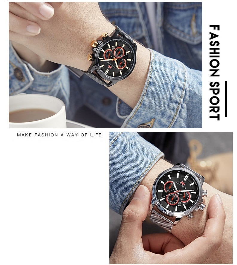 MINI FOCUS メンズ 男性用 腕時計 時計 ストップウォッチ クロノグラフ スポーツ ビジネス 欧米 海外人気 ミリタリーマルチ クォーツ カレンダー MF0142G