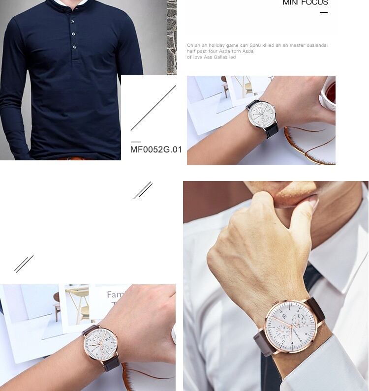 MINI FOCUS メンズ 男性用 腕時計 時計 ウォッチ ファッション ビジネス 欧米 海外人気 シンプル クォーツ カレンダー ドーム型風防 MF0052G