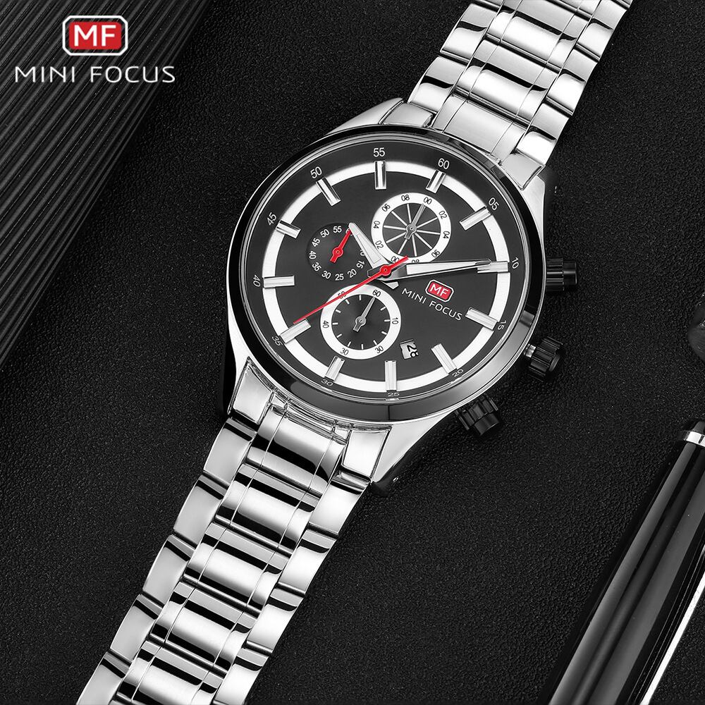MINI FOCUS 腕時計 メンズ 防水 スポーツ ミリタリー クラシック クロノグラフ 日付 大きめ 3気圧日常生活防水 ステンレススチール 夜光インデックス 0081G