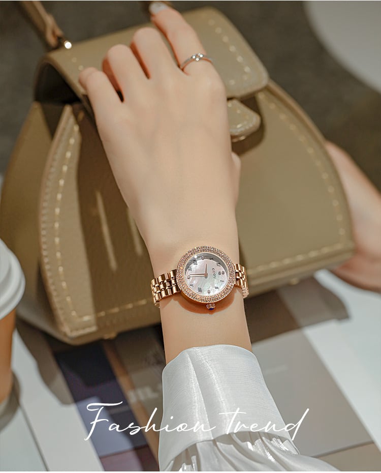 GUOU レディース腕時計 女性用 腕時計 時計 ウォッチ ラインストーン石使用クォーツ アクセサリー ラッピング無料 送料無料 かわいい おしゃれ ゴールド ブレスレット 旅行 イベント カジュアル シェル文字盤8226